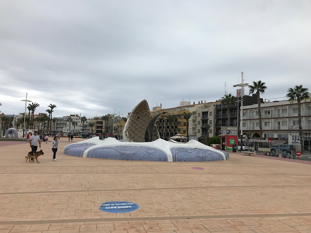 We zien een eettentje wat verschillende tapas heeft en gaan hier zitten. We bestellen wat brood met aioli en gehaktballetjes in tomatensaus. Het smaakt ons erg goed. Als we klaar zijn met eten bedenken we wat we nog meer willen gaan doen vandaag. Het Joan Míro park lijkt ons wel wat, dus nemen we de metro hier naartoe. Hier aangekomen is het een klein parkje, met 1 groot, kleurrijk beeld. Het is een aardige deceptie. Maar Google leert ons dat we op de verkeerde plek zijn, we willen naar het Míro museum. Gelukkig zijn we hier niet heel ver vandaag en hebben we het geluk dat bij de meeste trappen die we omhoog moeten, er ook een roltrap is. Dit scheelt heel wat klimwerk. Halverwege bedenkt Jaap dat het misschien wel slim is om te kijken of het museum wel open is, helaas blijkt deze op maandag dicht te zitten, dus moeten we onze plannen bijstellen.